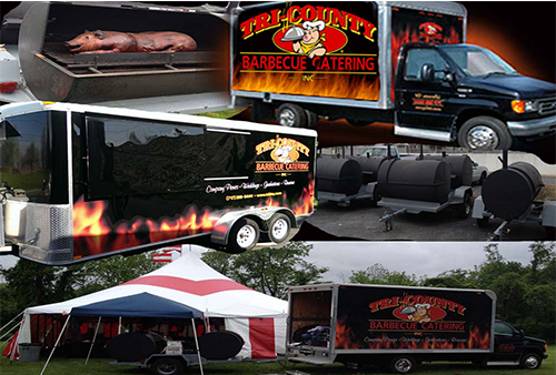 Tri-County Barbecue is an on-site caterer that brings the kitchen to your event location. We provide affordable dining with several different cuisines. Rain or Shine indoors or outdoors we are self contained so that you can relax. Your food will be prepared, served, enjoyed no matter what the conditions are. No electric not a problem our stoves are carcoal. No water we bring our own and equiped to handle a small army.